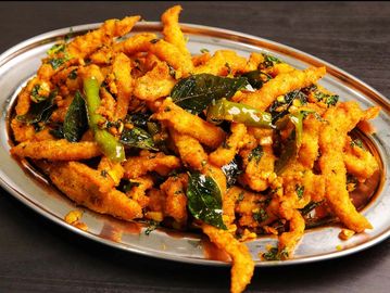 Chicken Majestic is a spicy, tangy chicken starter made with thin fried chicken strips tossed in a yogurt-based Indo-Chinese sauce.
