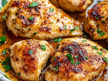 Chicken breasts are dipped in garlic-infused olive oil, coated with breadcrumbs and Parmesan, then baked until golden. It’s simple, crispy, and garlicky